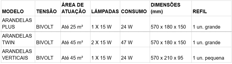- Refis adesivos: garantem a captura eficiente de insetos, com opções nos tamanhos grande (45 x 22 cm) e pequeno (40 x 13,5 cm).